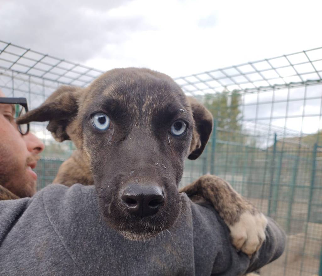 cucciola dagli occhi di ghiaccio, dolcissima futura taglia media, medio-grande dal carattere mite e tranquillo, va d’accordo anche con atri cani